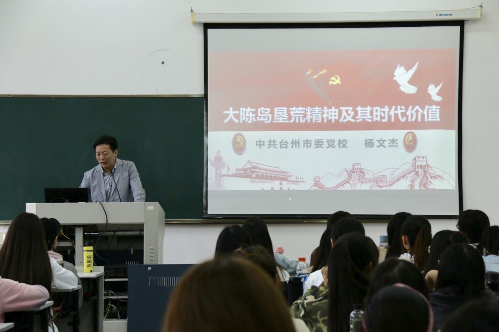 随后,德育导师代表杨文杰走进课堂,来到4号教学楼401教室,为17工商管理专业1班和2班的同学们带来了一场别开生面的思维碰撞和智慧分享。杨老师从大陈岛垦荒实践的缘起、大陈岛垦荒实践的概括、大陈岛垦荒精神的提炼以及大陈岛垦荒精神的价值四个方面向在座的同学们徐徐展示了大陈岛垦荒精神及其蕴含的时代价值。杨老师将这段历史用一段段精彩的小故事串联起来,为在座的学生铺展开了上世纪五六十年代的历史画卷。学生们时不时被杨老师生动幽默的教学语言所感染,课堂气氛活跃。杨文杰老师的示范课教学推动了马学院概论课菜单式组合教学改革的实施,将中国特色社会主义的台州实践融入了课堂教学的实践中,寓教于乐,打造了高效课堂。
