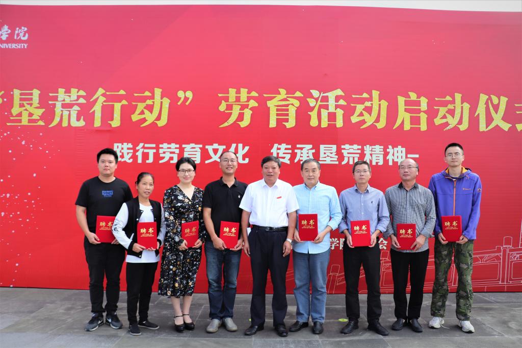 劳育活动启动仪式上,学校聘任章明领、陈敏、陈彤、葛昌华、刘维均、刘明月、林军辉、夏如艇、林霖、包兆胜等十位对农作物种植有丰富经验的老师为“垦荒行动”指导教师,金先龙为他们颁发指导教师聘书。接着,现场师生在工作人员带领下,为青年广场周边的四块花坛进行播种、浇水与覆膜。